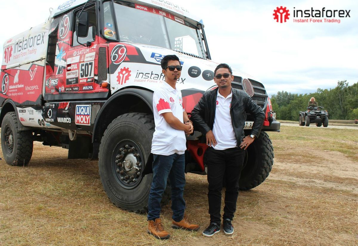 Pada hari kedua, para tamu kami bertemu dengan sejumlah pembalap dari Tim Loprais InstaTrade, tim balap terkenal dan peserta reguler di Dakar Rally – balapan antar benua tahunan yang diadakan di berbagai belahan dunia. Pemimpin tim dan pembalap utama, Aleš Loprais, dengan senang hati bersedia memamerkan mobil dan menjawab pertanyaan mitra kami tentang balapan tersebut. Dia juga mengendarai truk balap dengan semua orang yang ingin memiliki pengalaman mengemudi ala balapan yang sebenarnya. Tidak ada kata-kata yang dapat menggambarkan perasaan fantastis itu. Sangat mendebarkan, bahkan menjadi anggota kru Dakar Rally untuk beberapa jam, beraksi di jalan dengan kecepatan tanpa batas.
