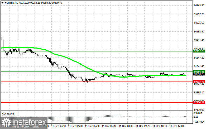 Сценарий №2: покупать биткоин можно от нижней границы $89 600 при отсутствии рыночной реакции на ее пробой в обратную сторону к уровням $90 500 и $92 400.