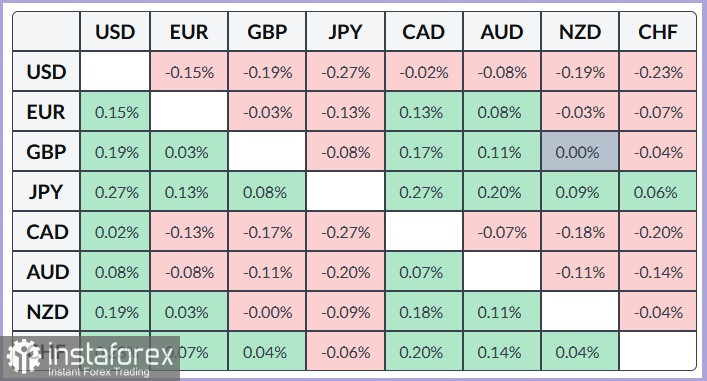 В целом пара GBP/JPY показывает скромный недельный прирост, но неоднозначный фундаментальный фон требует осторожности от агрессивных бычьих трейдеров. В таблице ниже приведено процентное изменение японской иены к основным валютам за сегодня. Иена оказалась сильнейшей против канадского доллара.
