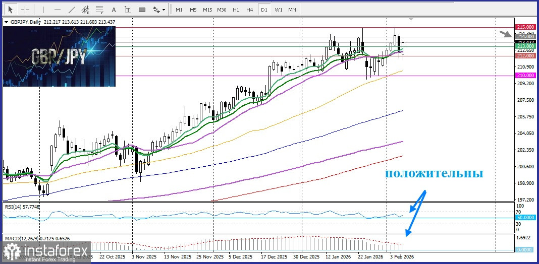 А с технической точки зрения пара торгуется выше всех скользящих средних на пути к ближайшей цели круглого уровня 214,00. Осцилляторы на дневном графике положительны, подтверждая позитивный прогноз.