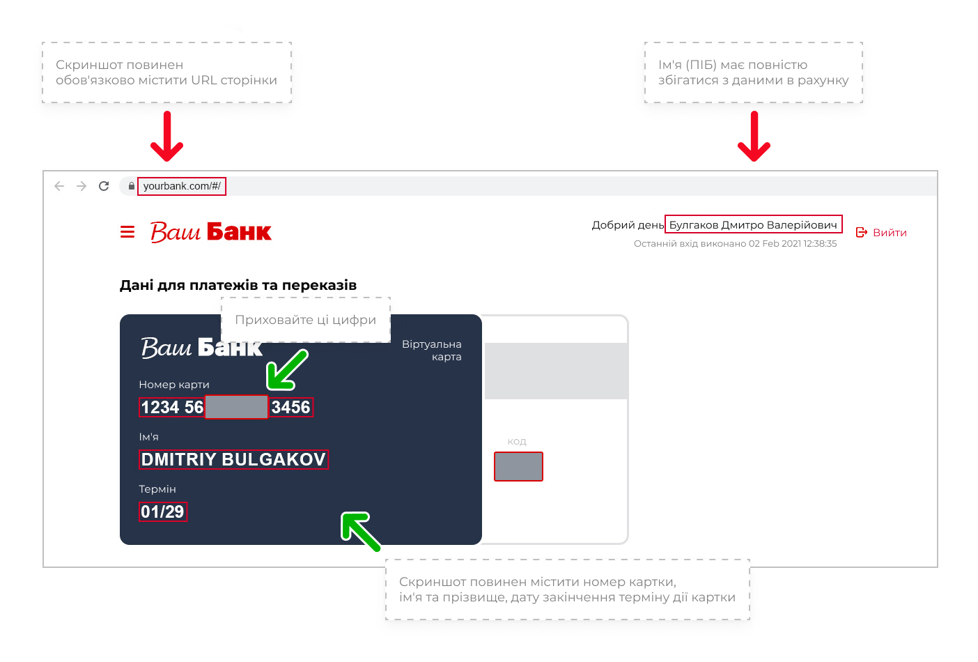 Кожна транзакція з такої картки має підтверджуватись скриншотом про оплату. Підтвердження необхідно надсилати на адресу finance-docs@mail.instatrading.com з електронної пошти, вказаної в особистих даних вашого торгового рахунку. У темі листа не забудьте вказати номер торгового рахунку.