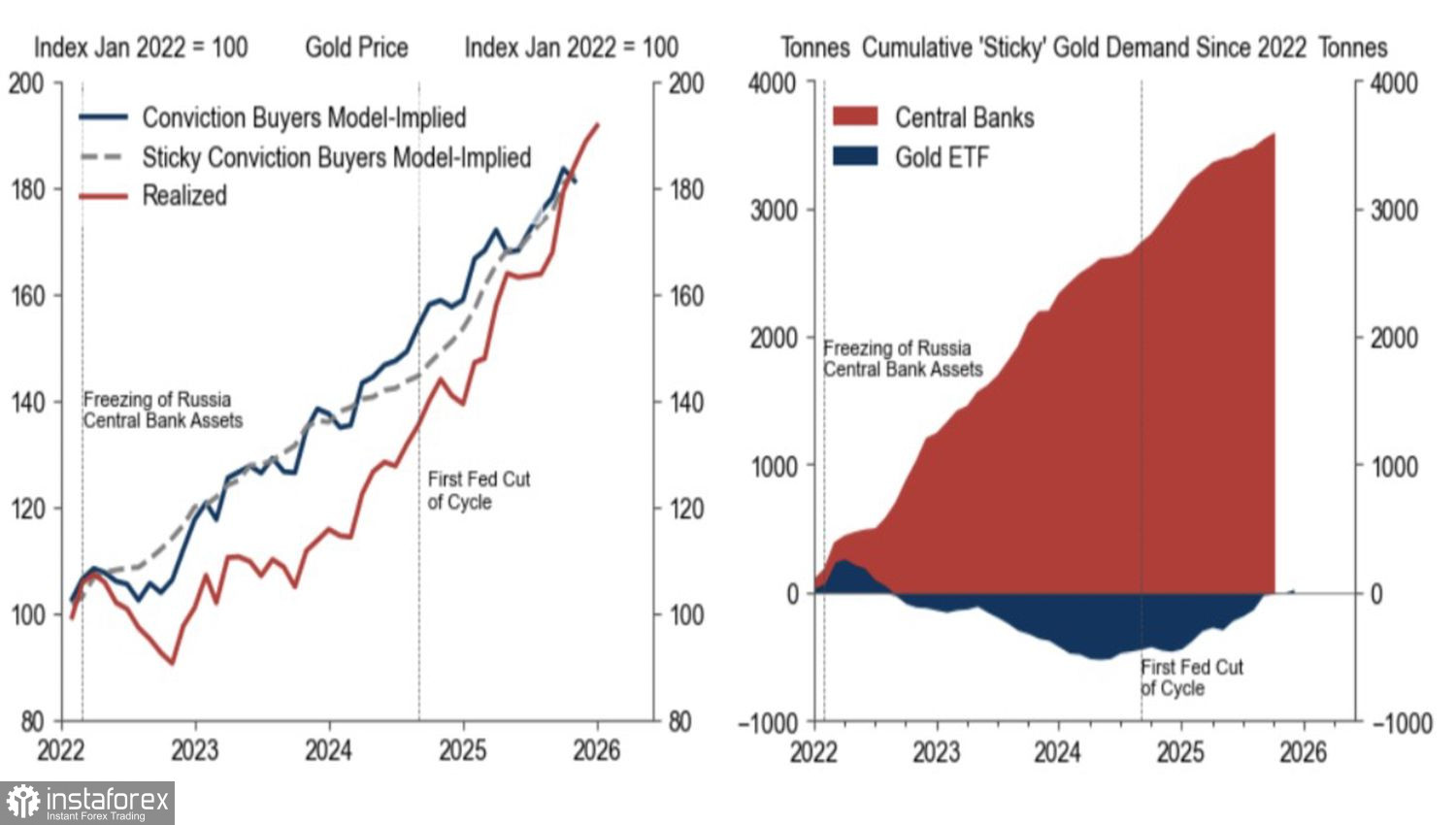 Обострение конкуренции между центральными банками и специализированными биржевыми фондами за слитки рискует вылиться в рост котировок золота выше ранее объявленного Goldman Sachs прогноза в $4900 за унцию к концу 2026.
