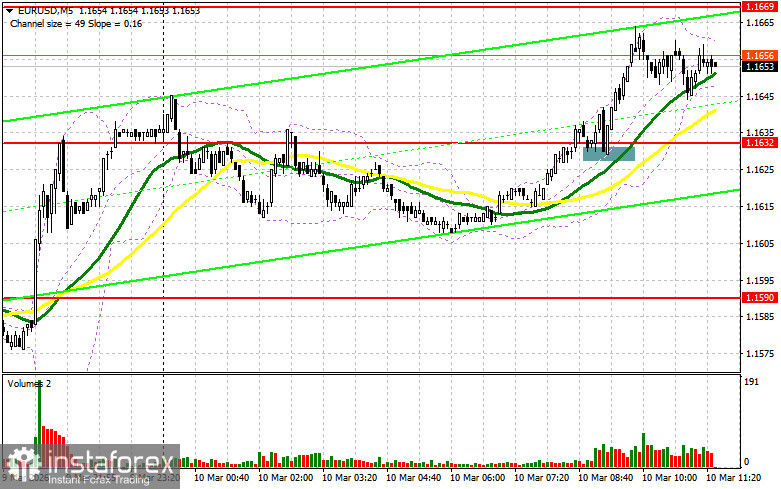 В своем утреннем прогнозе я обращал внимание на уровень 1.1632 и планировал от него принимать решения по входу в рынок. Давайте посмотрим на 5-минутный график и разберемся с тем, что там произошло. Прорыв и обратный тест 1.1632 привели к точке входа на покупку евро, что вылилось в рост пары более чем на 30 пунктов. На вторую половину дня техническая картина не пересматривалась.