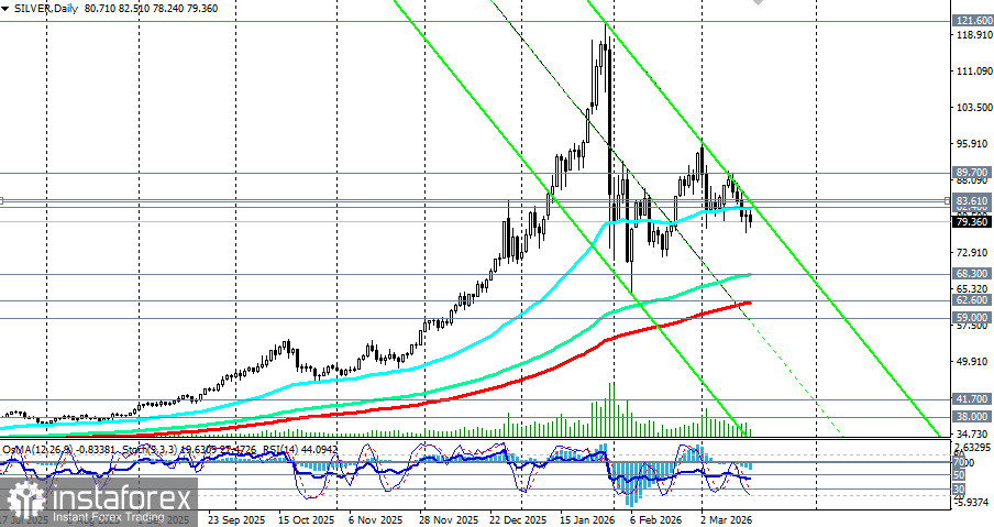 Несмотря на ослабление доллара США и эскалацию ближневосточного конфликта, серебро остается под давлением, консолидируясь в районе 79.00-82.00 долларов за унцию после недавнего падения к двухнедельному минимуму вблизи 77.00.