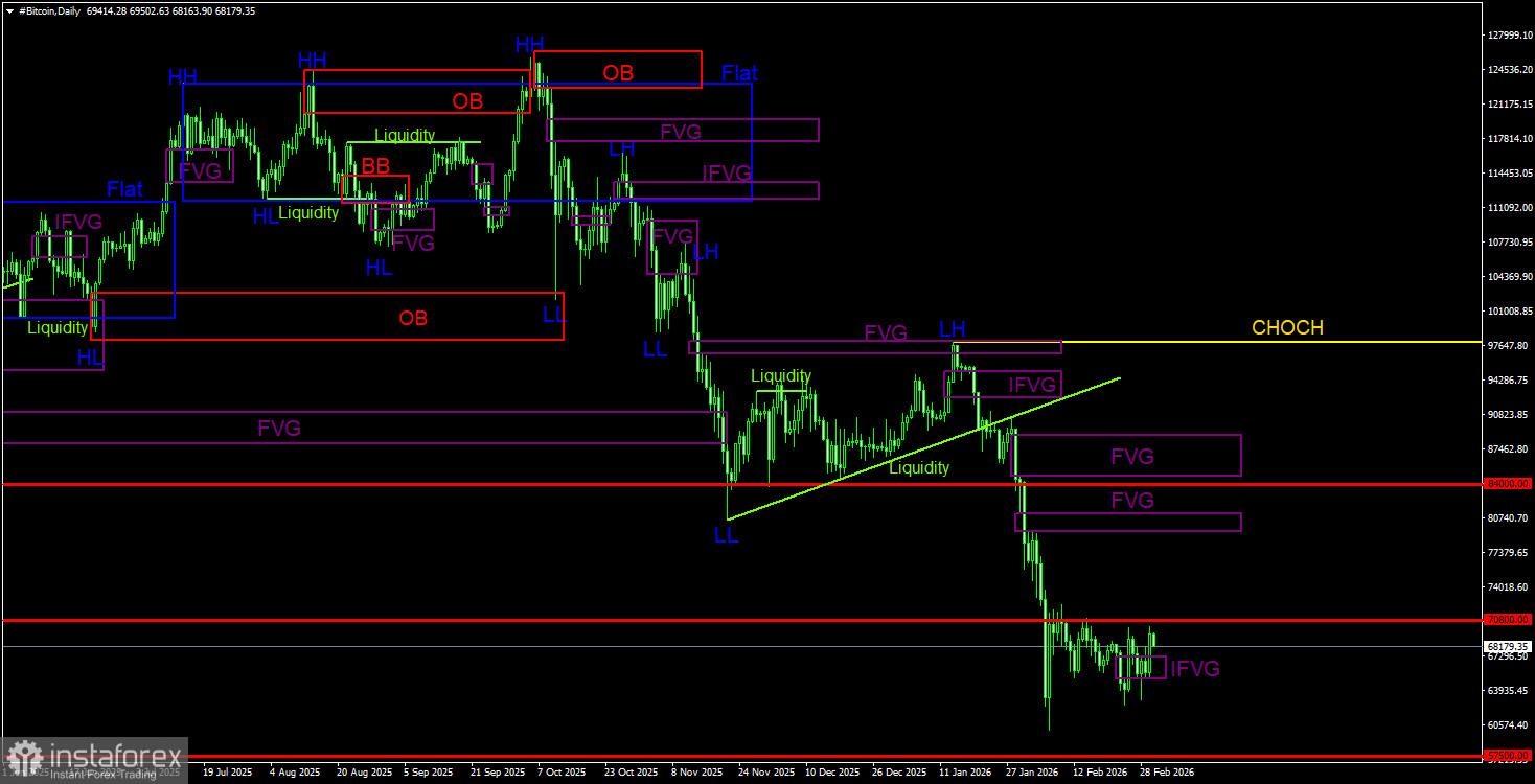 Торговые рекомендации по Биткоину(Bitcoin) на 3 марта по системе ICT.