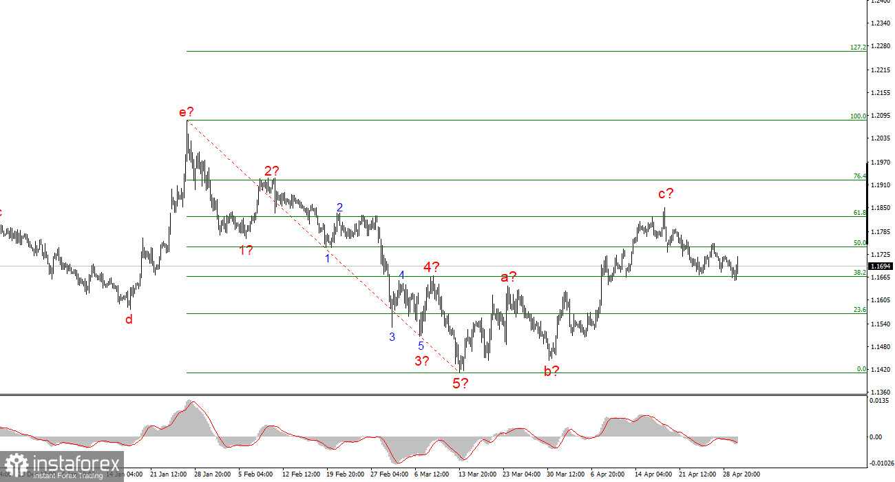 Исходя из всего вышесказанного, в 2026 году не стоит ожидать снижения процентной ставки. Для доллара США это хорошие новости, но спешу напомнить, что, согласно инструменту CME FedWatch, рынок и до апрельской встречи ФРС не ждал ни одного раунда смягчения денежно-кредитной политики. Теперь баланс ожиданий сместился в сторону ужесточения, хоть и минимально. Однако для американской валюты «может быть ФРС до конца года один раз повысит ставку» – это слишком слабый фактор роста. Поэтому рынок практически никак не отреагировал на итоги заседания ФРС.